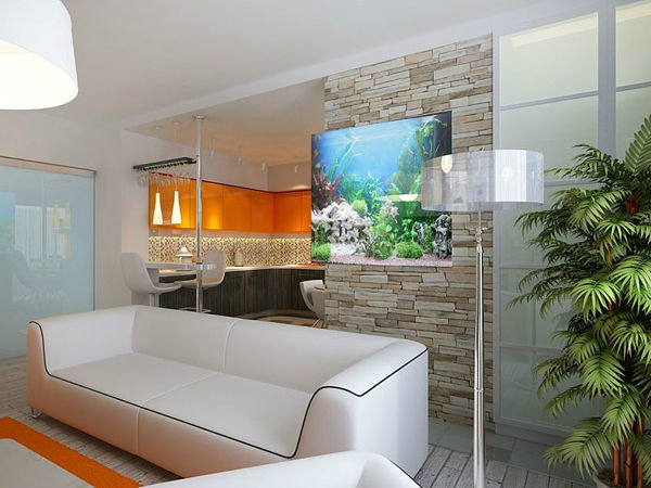 Фотография: Кухня и столовая в стиле Современный, Эко, Декор интерьера, Малогабаритная квартира, Декор, Мебель и свет, Дом и дача, аквариум в интерьере, аквариум – фото на INMYROOM