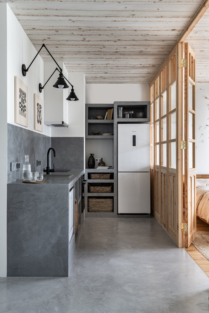 Обалденная двушка 42 м² с кухней из бетона4,4