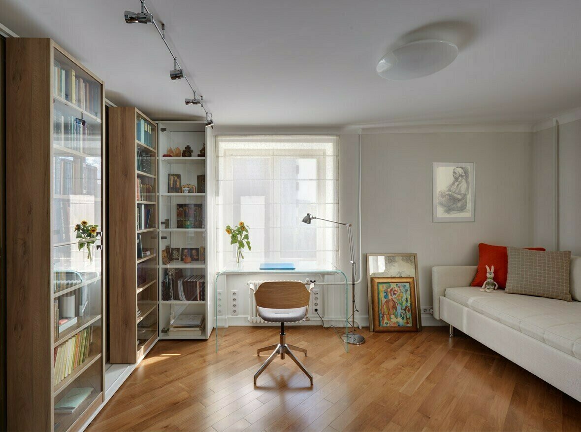 Крошечная однушка 35 м² с многоуровневой библиотекойДизайн