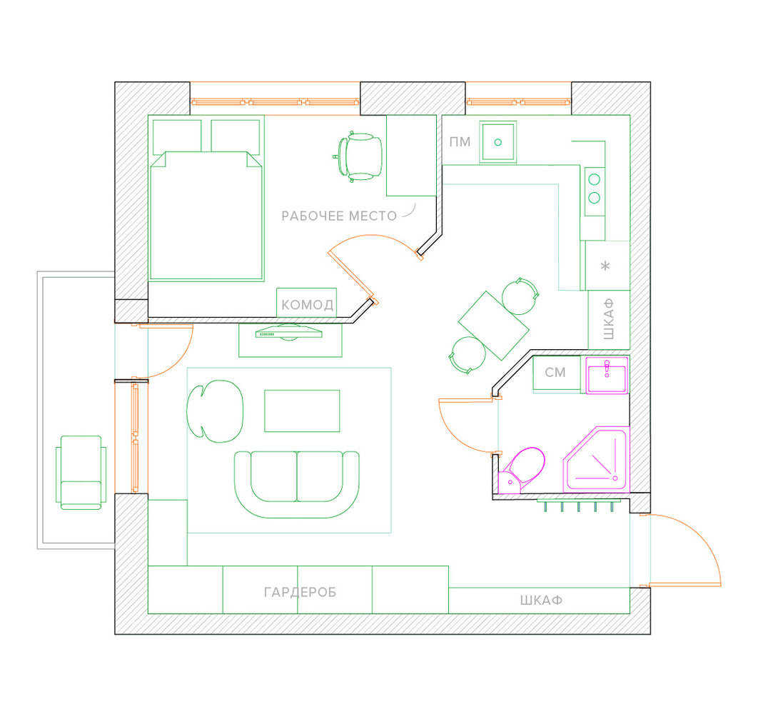 Фотография: Планировки в стиле , Малогабаритная квартира, Квартира, Перепланировка, Ремонт на практике, Ксения Чупина, перепланировка недели, идеи перепланировки однушки, перепланировка однокомнатной квартиры, как обустроить однушку, как сделать из однушки студию, перепланировка однушки в санкт-петербурге, перепланировка в хрущевке, перепланировка в брежневке, Панельный дом, 1 комната, до 40 метров, I-507 – фото на INMYROOM