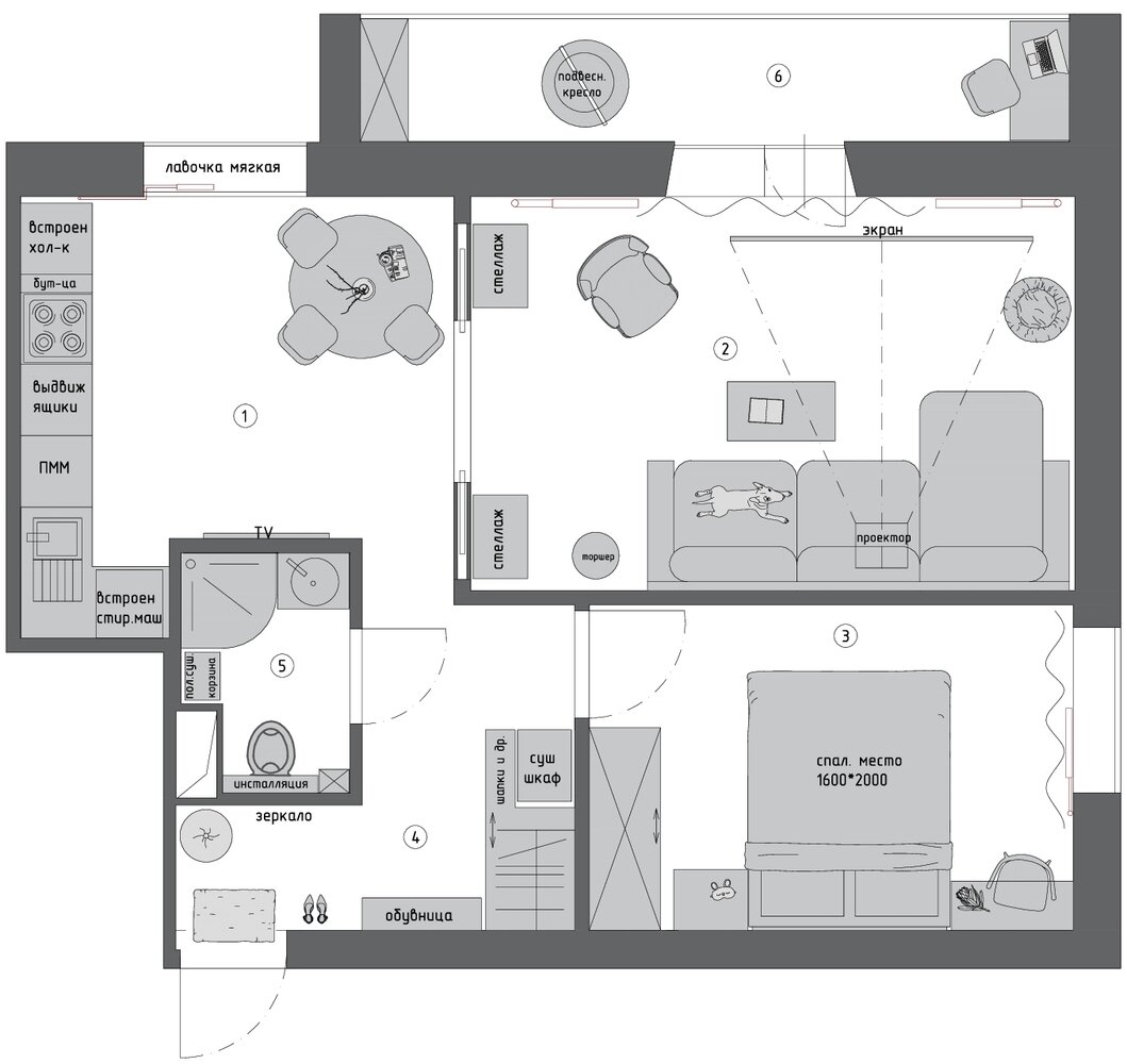 Фотография: Планировки в стиле , Современный, Квартира, Проект недели, Москва, 2 комнаты, 40-60 метров, Евгения Акимова – фото на INMYROOM
