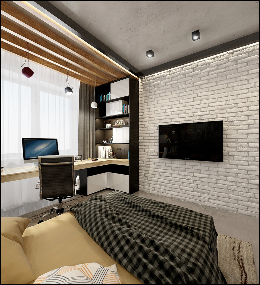 Фотография:  в стиле , Спальня, Кабинет, Лофт, Декор интерьера, Квартира, Планировки, Декор, Мебель и свет, Проект недели, Зеленый, Серый, Коричневый, комната студента, как обустроить комнату для студента, спальня в стиле лофт – фото на INMYROOM