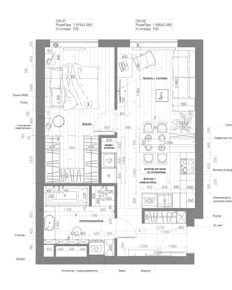 Евродвушка 45 м² для семьи дизайнера и программистаДизайн