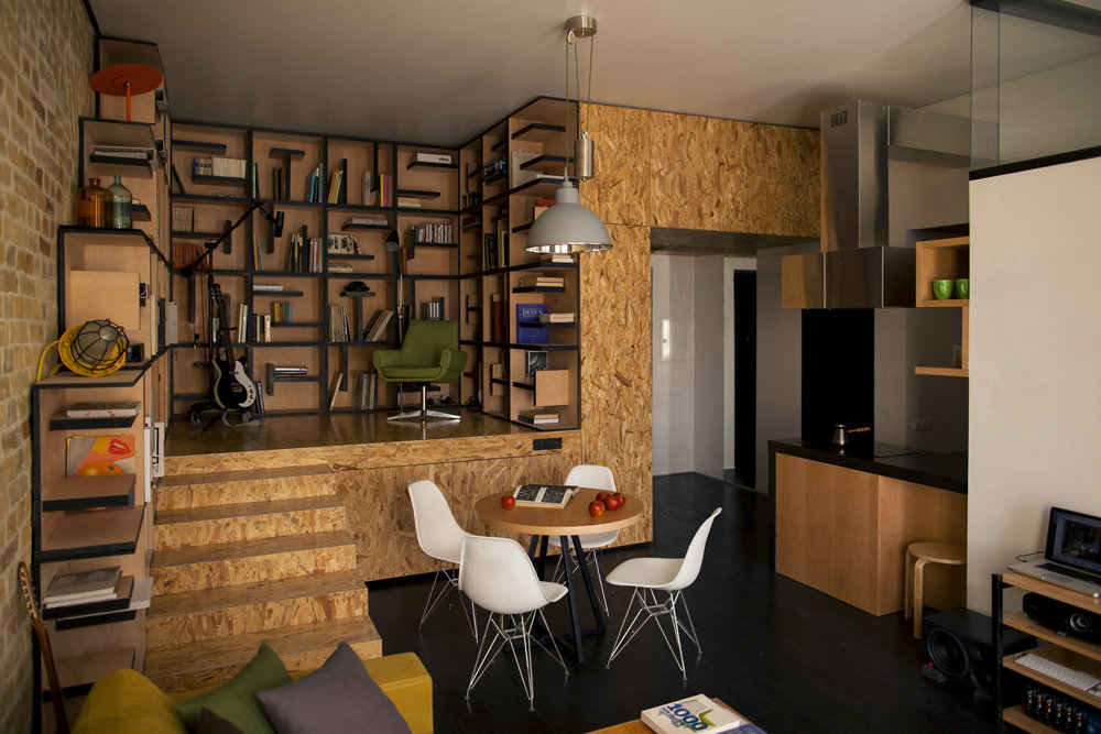 Фотография: Гостиная в стиле Лофт, Современный, Квартира, Студия, Украина, Планировки, Минимализм, Проект недели, Черный, Зеленый, Бежевый, Желтый, Серый, Коричневый, Киев, Эко, Алексей Быков – фото на INMYROOM