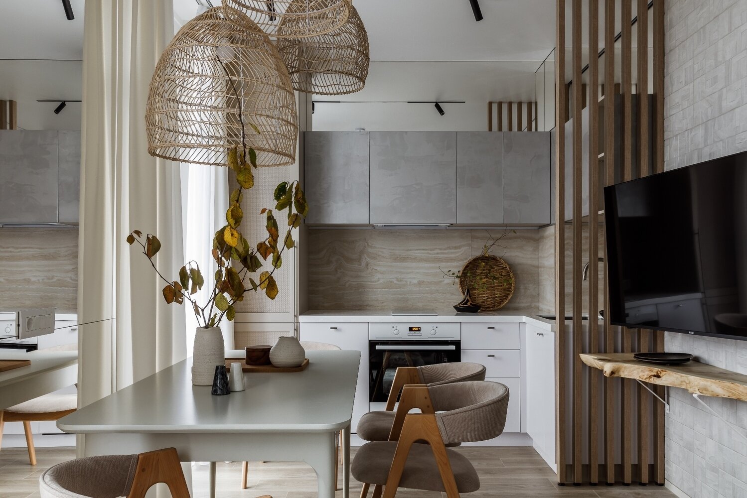 Фотография: Кухня и столовая в стиле Современный, Эко, Квартира, Проект недели, Сочи, 2 комнаты, 40-60 метров – фото на INMYROOM