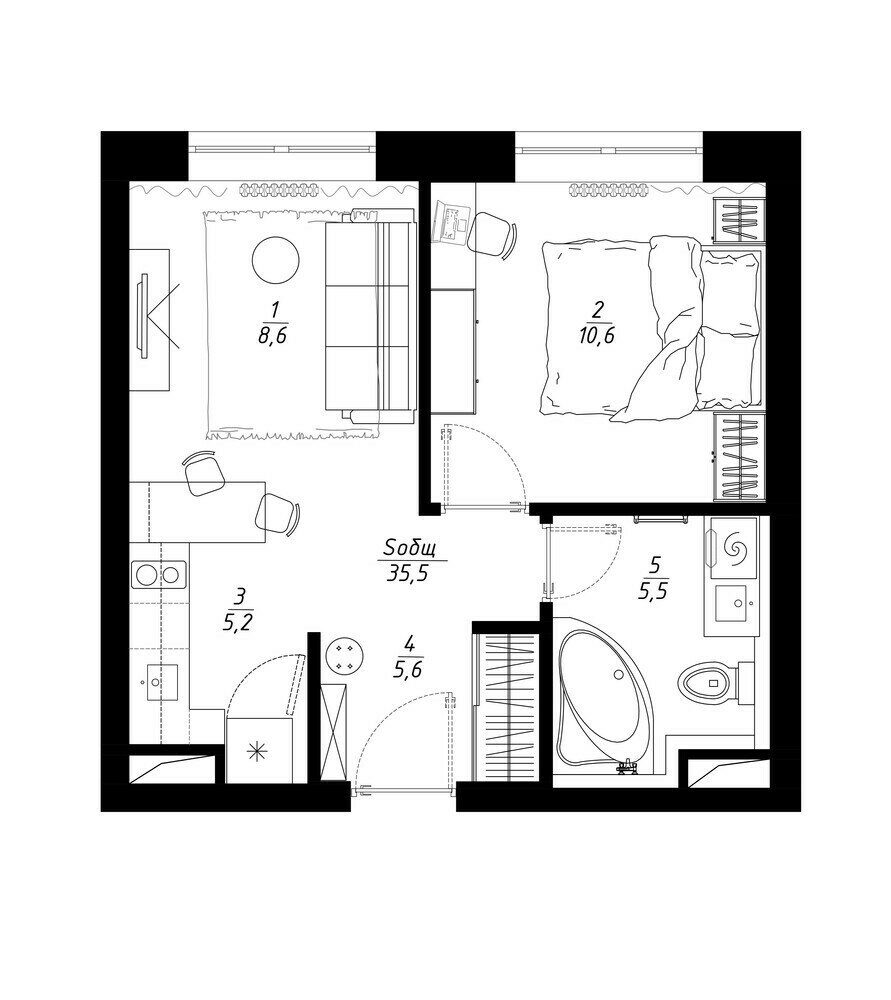 Классная бюджетная двушка 35 м²Дизайн
