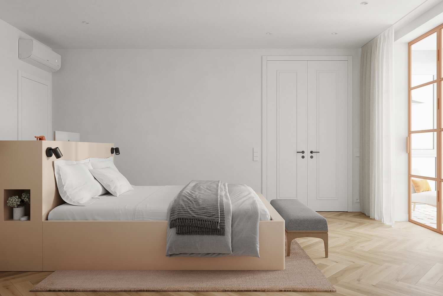Фотография: Спальня в стиле Современный, Минимализм, Квартира, Проект недели, Москва, Монолитный дом, 3 комнаты, Более 90 метров, AE Design, Екатерина Ткаченко, Алиса Сивякова – фото на INMYROOM