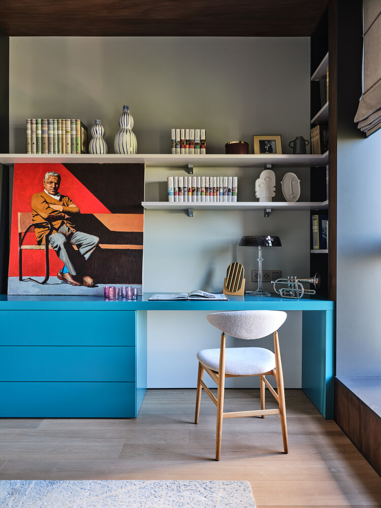 Все системы хранения создавали на заказ. По большей части они интегрированы в интерьеры комнат, но есть также две вместительные гардеробные. Это существенно помогает избегать нагромождения шкафов в жилом пространстве.