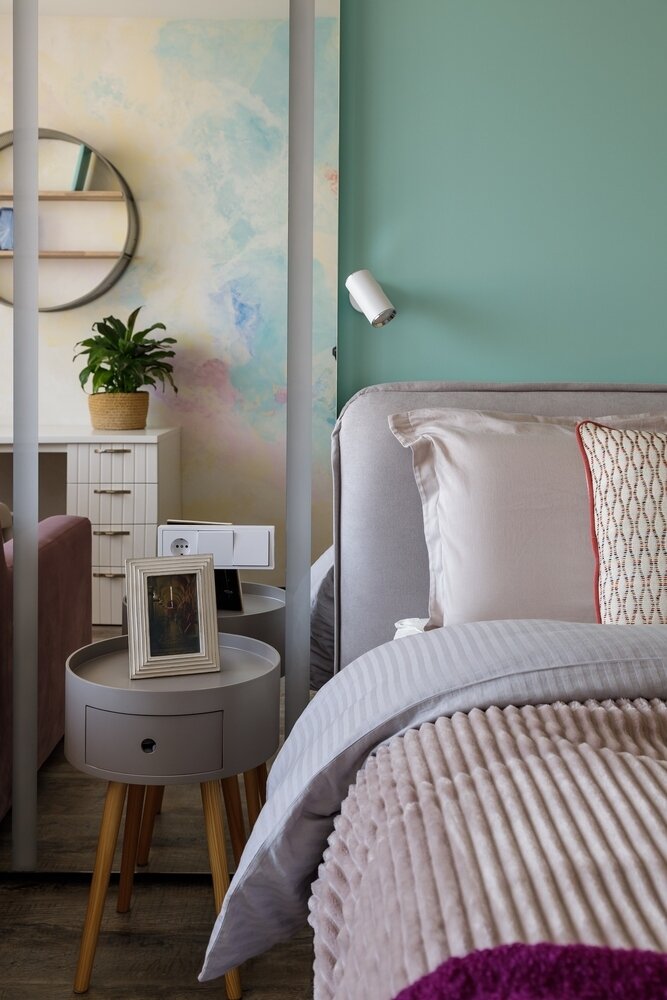 Семейная квартира с кухней в нише и тремя спальнямиДизайн