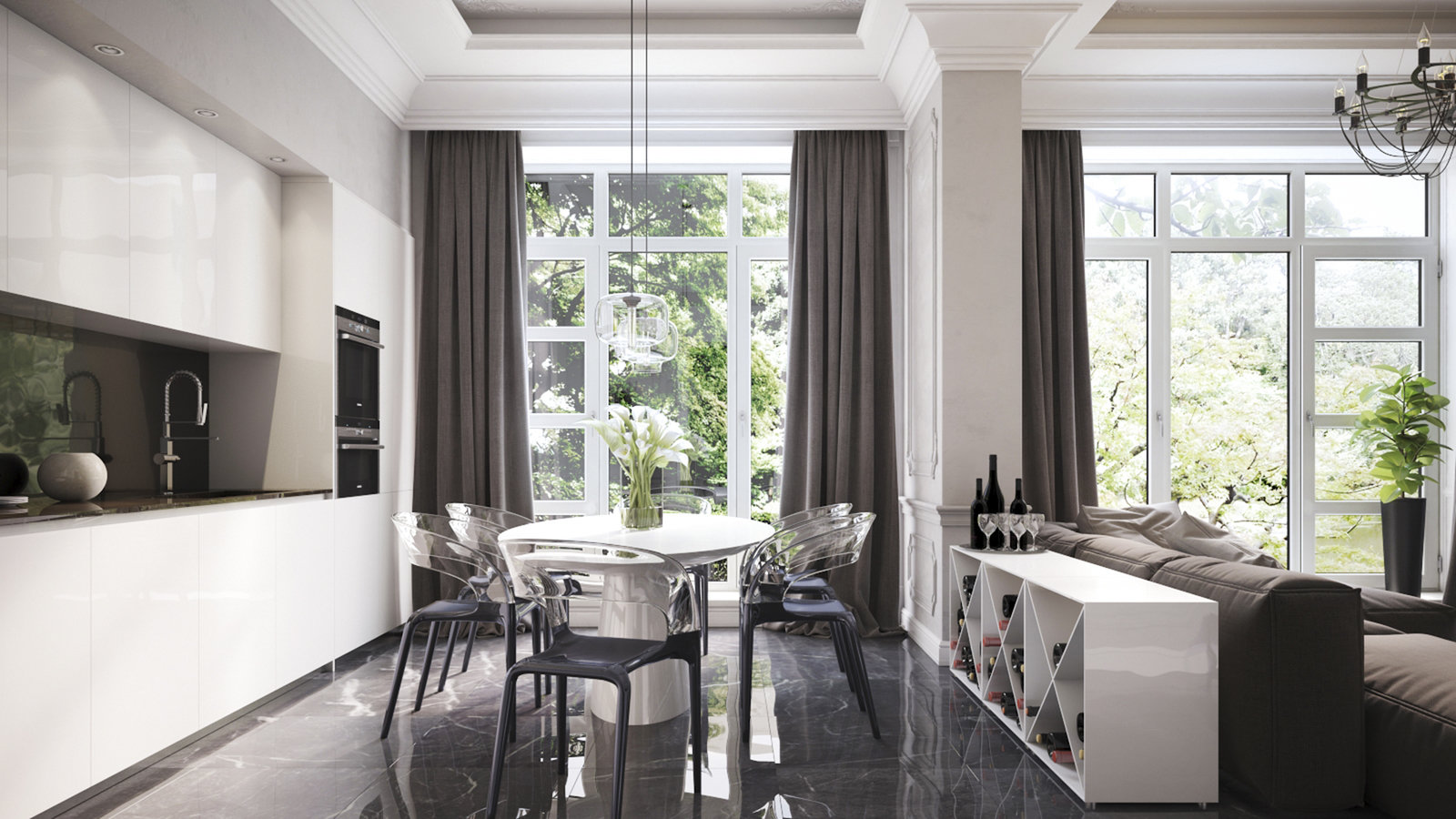 Фотография: Кухня и столовая в стиле Классический, Эклектика, Современный, Дом, Планировки, Miele, Мебель и свет, Белый, Минимализм, Черный, Красный, Бежевый, Серый, Голубой, Бирюзовый, Подмосковье, Дом и дача, MERIDIANI, Atlas Concorde, Villeroy & Boch, Hansgrohe, Delta Light, Barovier & Toso, Masiero, Studio Beam, Bonaldo, Regency Hob Grate, Mittel, Никита Морозов, KM Studio, Таунхаус – фото на INMYROOM