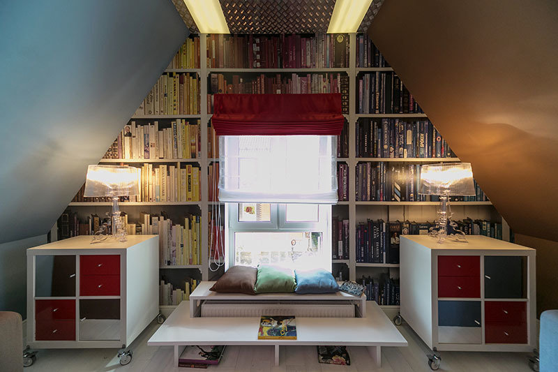 Фотография: Гостиная в стиле Современный, Спальня, Лофт, Интерьер комнат, Дача, Дачный ответ, Библиотека, Мансарда – фото на INMYROOM