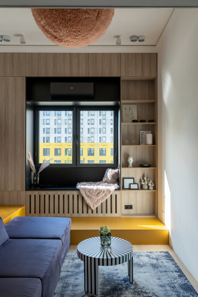 Подиум и ступеньки выделили цветом: это позволило добавить акцентный элемент, при этом не перегрузив пространство деталями.