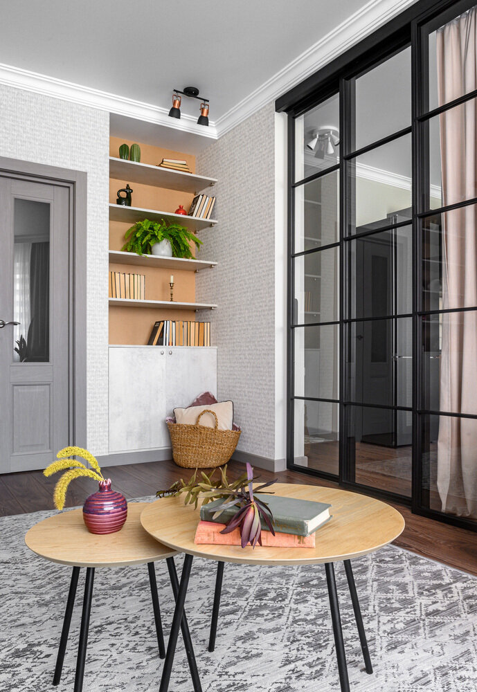 Теплый и уютный интерьер трешки 79 м² для двух человекДизайн