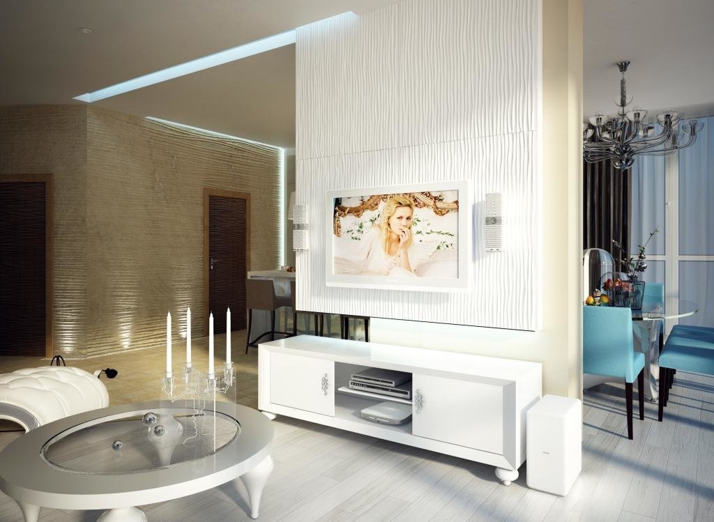 Фотография: Гостиная в стиле Современный, Квартира, Россия, Планировки, Декор, Белый, Минимализм, Проект недели, Бежевый, Синий, Голубой, Бирюзовый, Сочи, GraniStudio – фото на INMYROOM