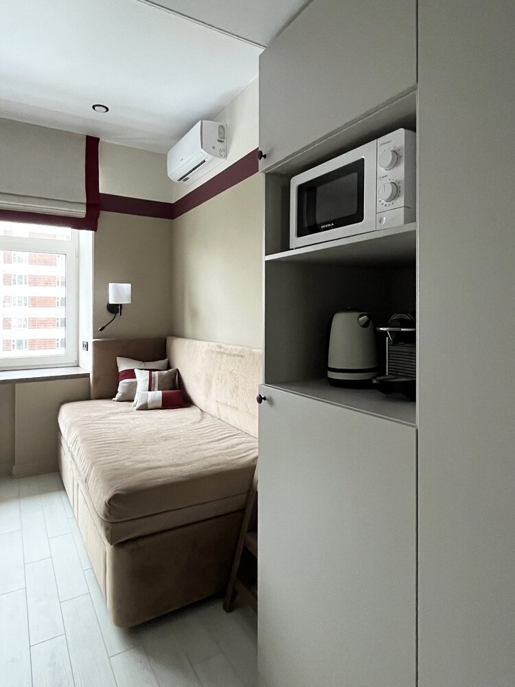 Фотография: Гостиная в стиле Современный, Минимализм, Малогабаритная квартира, Квартира, Студия, Проект недели, Москва, Кирпичный дом, до 40 метров, Yuloo Studio, Юнна Лукинских – фото на INMYROOM