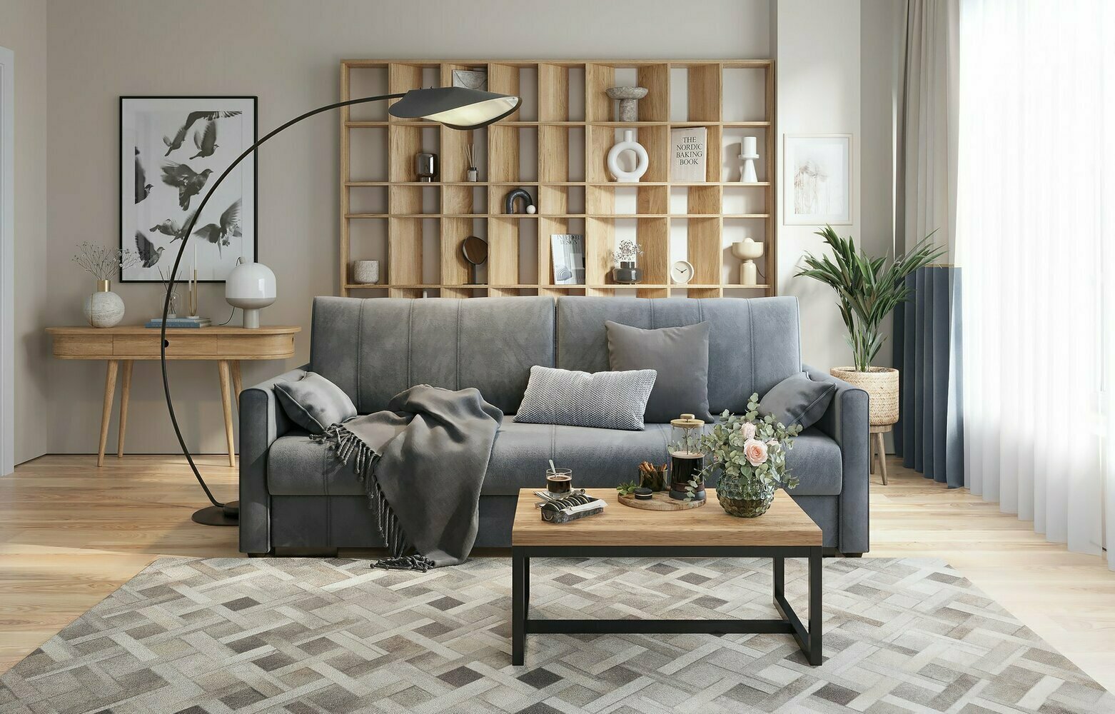 Тканевый прямой диван Римини представлен в сером, синем, бежевом и зеленом оттенках.  Оснащен механизмом трансформации «Еврокнижка», отличается надежностью, долговечностью и удобством эксплуатации.