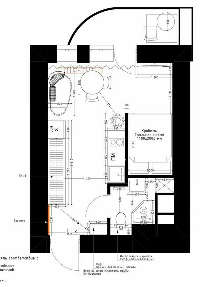 Малогабаритка 24 м² с проходной кухней и спальней в нишеДизайн