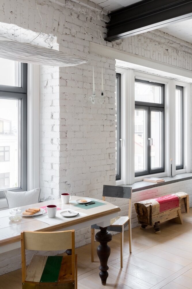 В ванной комнате и прихожей пол декорирован микробетоном, этот же материал нанесен и на подоконники, предусмотрительно подогреваемые теплым полом.