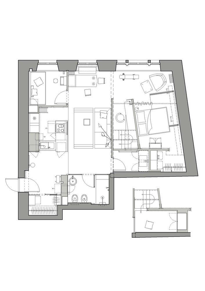 Атмосферная квартира 70 м² с кирпичными стенамиДизайн