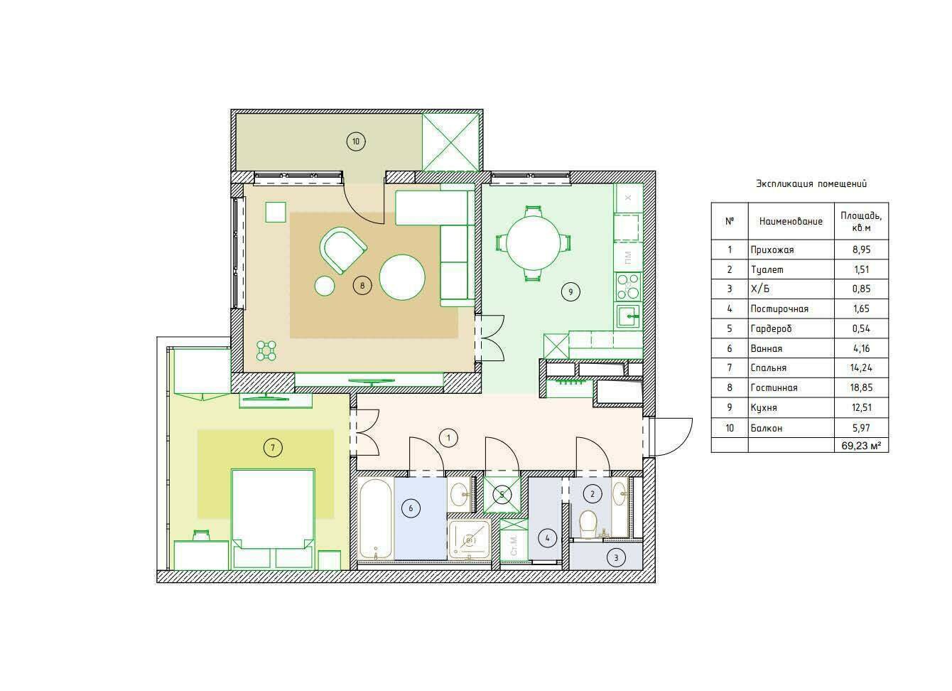 Очень уютная двухкомнатная квартира 69 м²Дизайн