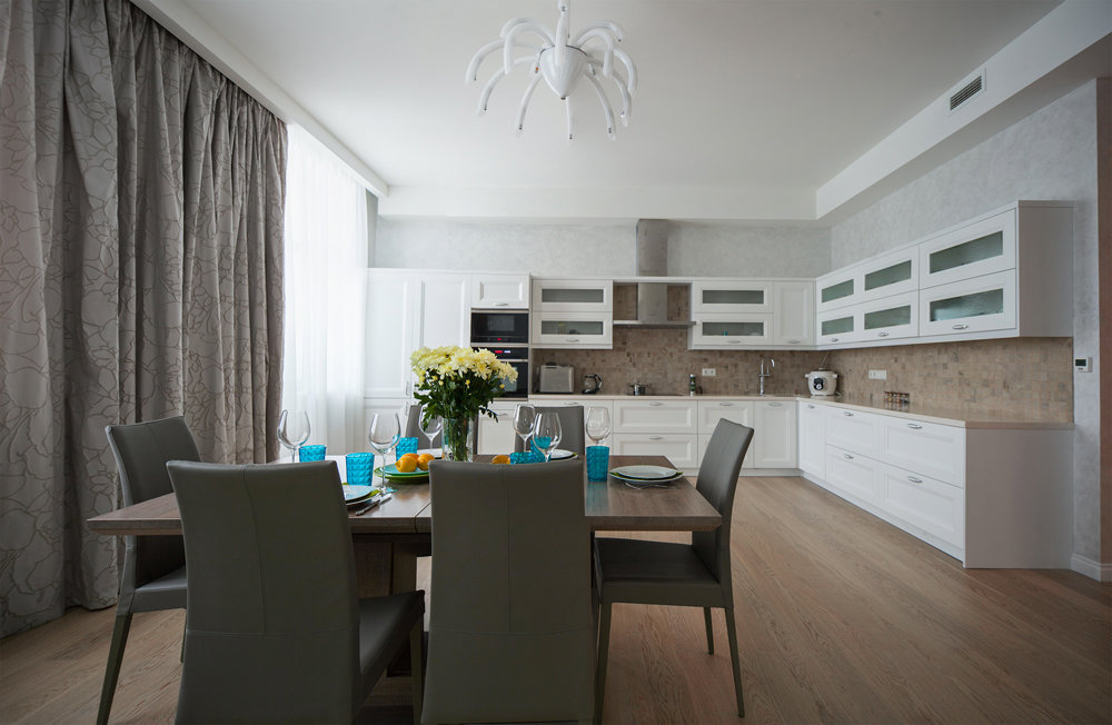 Фотография: Кухня и столовая в стиле Современный, Эклектика, Квартира, Россия, Планировки, Eichholtz, SMEG, Декор, Мебель и свет, Белый, Минимализм, Проект недели, Бежевый, Серый, Розовый, Санкт-Петербург, ELE, Boen, Shannon, Toto, Arezia, Johnson Tiles, Karman, Маша Марченко – фото на INMYROOM