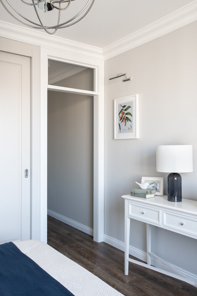 Над дверью сделали фрамугу со стеклом, чтобы больше света проникало в проходную зону, плюс так проем выглядит легче.