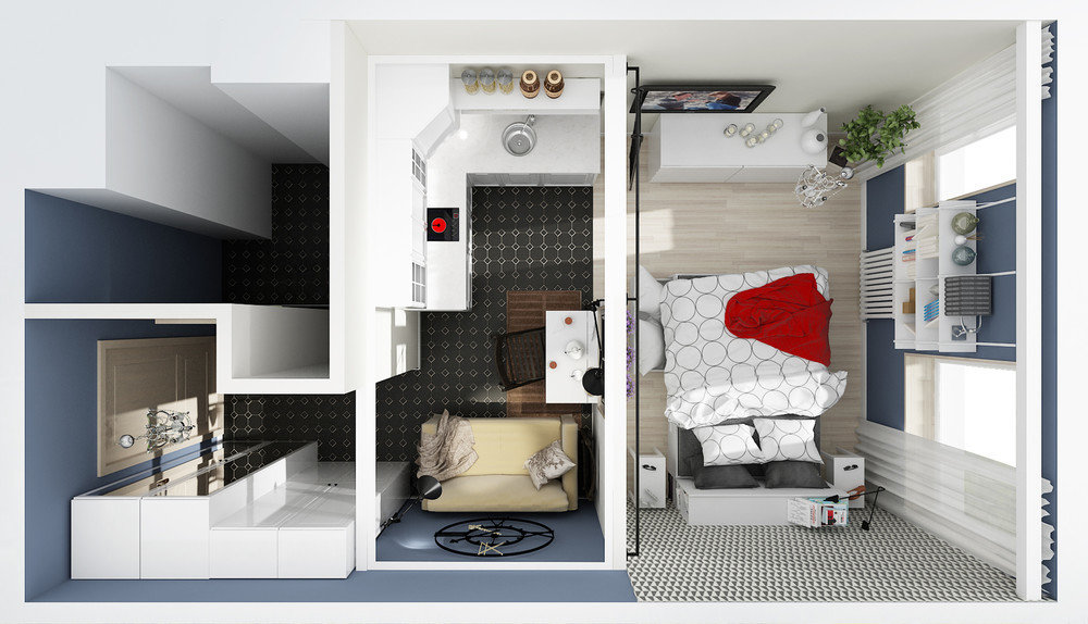 Фотография: Планировки в стиле , Лофт, Скандинавский, Малогабаритная квартира, Квартира, Мебель и свет, Белый, Минимализм, Переделка, Черный, Москва, Красный, Бежевый, Dulux, Серый, Голубой, ИКЕА, Новая Москва, Московская область, Cosmorelax, Blak, Coswick, Borastapeter, Lightstar, REGUL, Александра Труш – фото на INMYROOM