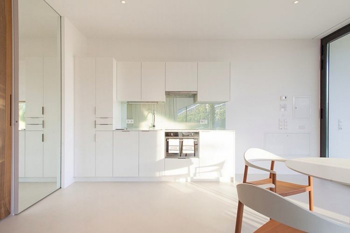 Фотография: Кухня и столовая в стиле Минимализм, Современный, Хай-тек, Дом, Италия, Архитектура, Ландшафт, Планировки, Artemide, Мебель и свет, Терраса, Белый, Черный, Шале, Бежевый, Эко, Дом и дача, Больцано, Eckelt, PLANK, Peter Pichler, зеркальные дома, дома с зеркальными стенами – фото на INMYROOM