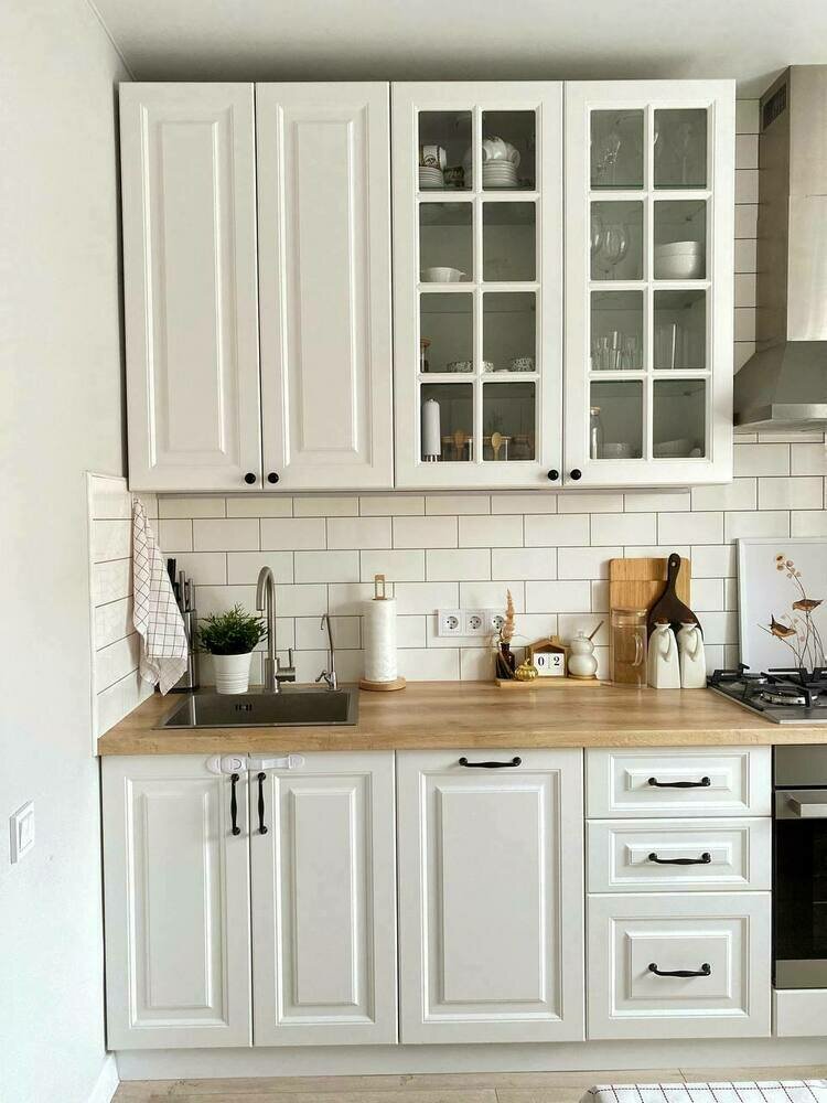 Фотография:  в стиле , Кухня и столовая, Скандинавский, Квартира, Белый, Ремонт на практике, интерьер кухни, ремонт своими руками, хранение на кухне, 40-60 метров, энциклопедия_кухня, хранене на кухне – фото на INMYROOM