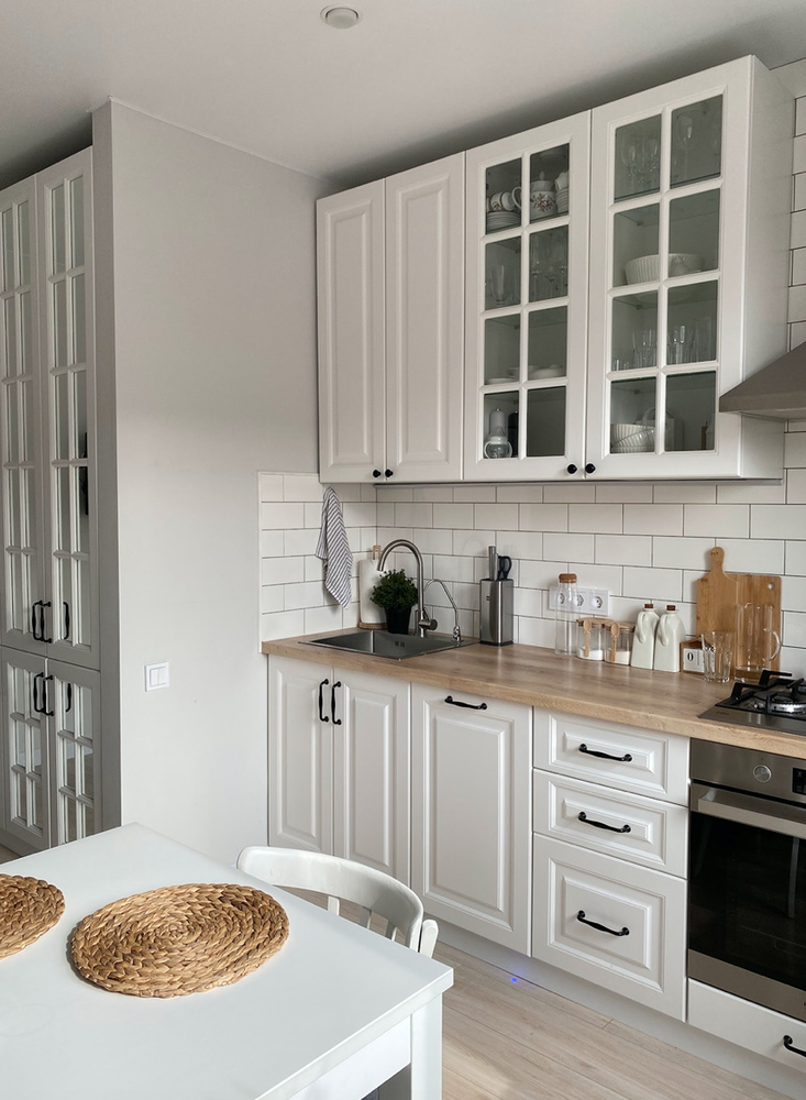 Фотография:  в стиле , Кухня и столовая, Скандинавский, Квартира, Белый, Ремонт на практике, интерьер кухни, ремонт своими руками, хранение на кухне, 40-60 метров, энциклопедия_кухня, хранене на кухне – фото на INMYROOM