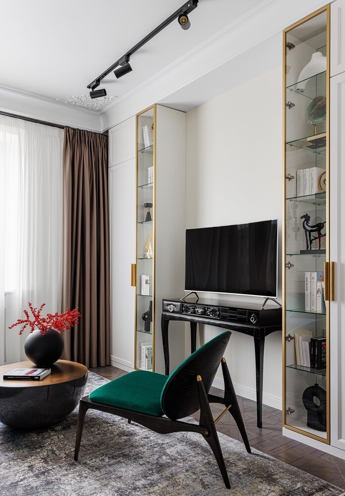 Фотография: Гостиная в стиле Классический, Современный, Эклектика, Малогабаритная квартира, Квартира, Проект недели, Москва, Сталинка, Кирпичный дом, 2 комнаты, 40-60 метров, ELF Interior, Елена Гладкова, Марианна Островская – фото на INMYROOM