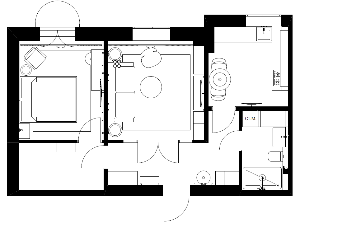 Фотография: Планировки в стиле , Эклектика, Малогабаритная квартира, Квартира, Проект недели, Москва, Сталинка, Кирпичный дом, 2 комнаты, 40-60 метров, ELF Interior, Елена Гладкова, Марианна Островская – фото на INMYROOM