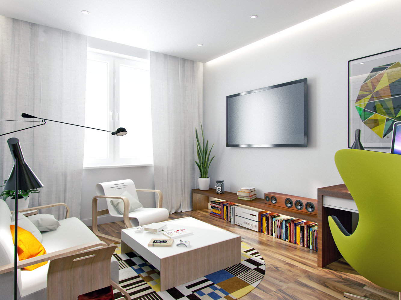 Фотография: Гостиная в стиле Лофт, Современный, Скандинавский, Квартира, Россия, Планировки, Мебель и свет, Проект недели, Подмосковье, Belinka, WoodBee, Artek, AJ Louis Poulsen, Massive NERO, Flos Aim, Антон Севастьянов – фото на INMYROOM
