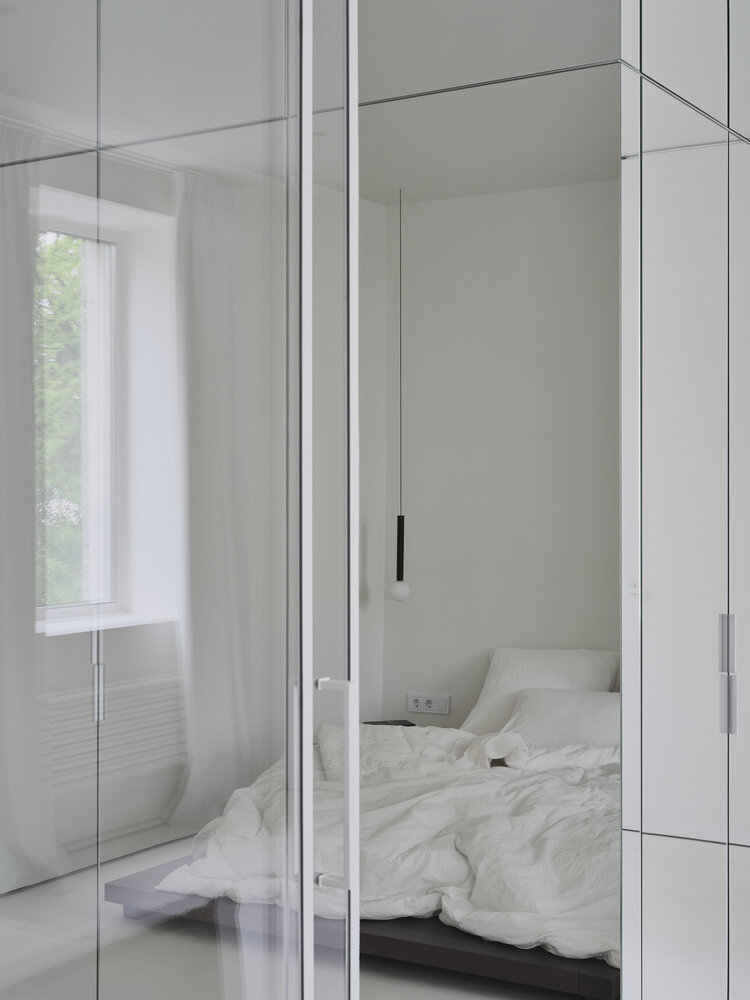 Фотография: Спальня в стиле Современный, Минимализм, Квартира, Переделка, Москва, Сталинка, Кирпичный дом, 2 комнаты, 40-60 метров, до и после, A77 – фото на INMYROOM