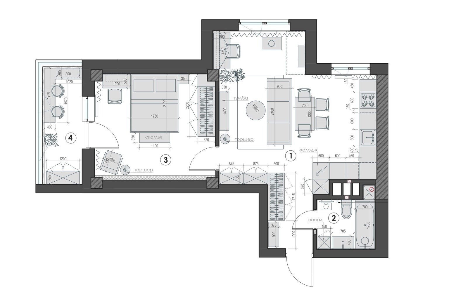 Фотография: Планировки в стиле , Современный, Квартира, Проект недели, Ростов-на-Дону, 2 комнаты, 40-60 метров, Виктория Глаз – фото на INMYROOM