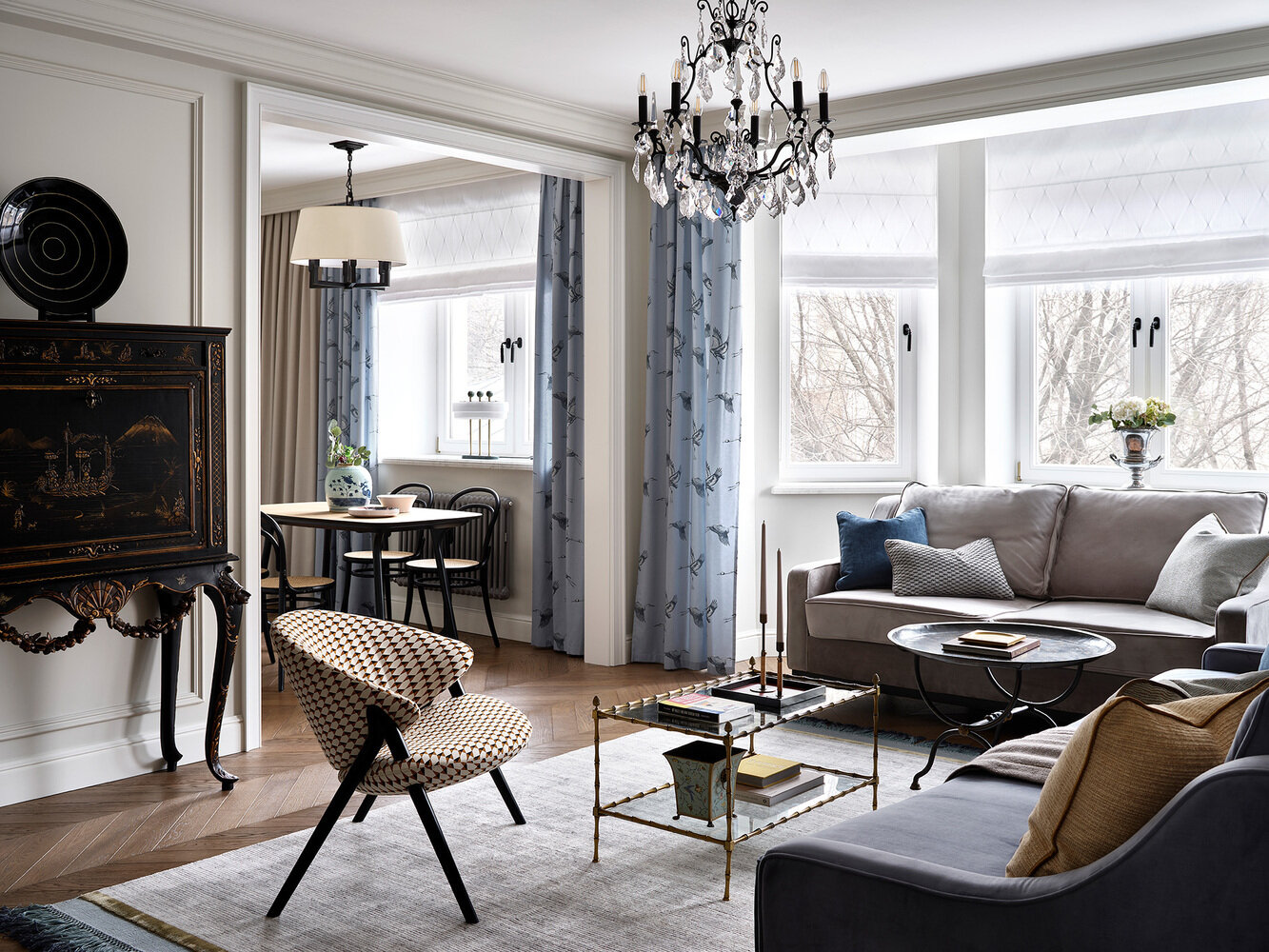 Фотография: Гостиная в стиле Классический, Современный, Эклектика, Винтажный, Квартира, Проект недели, Москва, Кирпичный дом, 3 комнаты, Более 90 метров, Елена Маркина, Markina design – фото на INMYROOM
