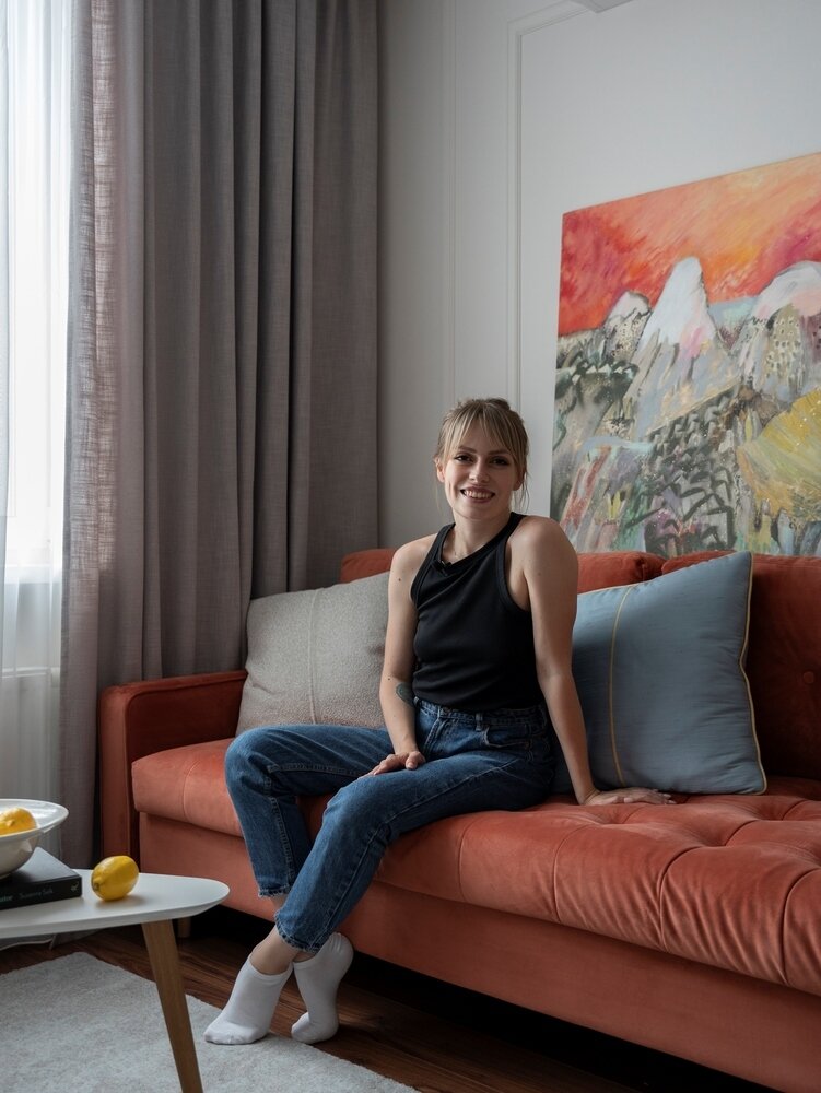 Продуманная евротрешка 76 м² с цветными акцентамиДизайн