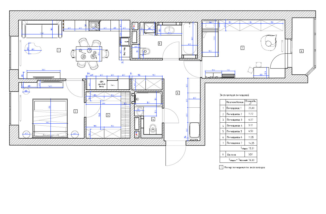 Продуманная евротрешка 76 м² с цветными акцентамиДизайн