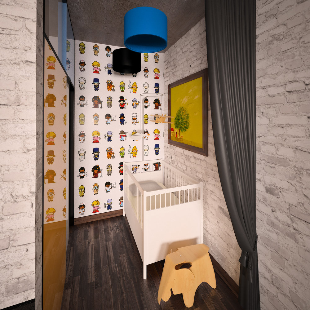 Фотография: Детская в стиле Лофт, Эклектика, Квартира, Россия, Планировки, Мебель и свет, Белый, Проект недели, Черный, Зеленый, Желтый, Синий, Серый, Коричневый, Подмосковье, Красногорск, спальня-гостиная, Александр Колганов, Евгения Щепенок, model_bananova, как отгородить детскую в студии – фото на INMYROOM