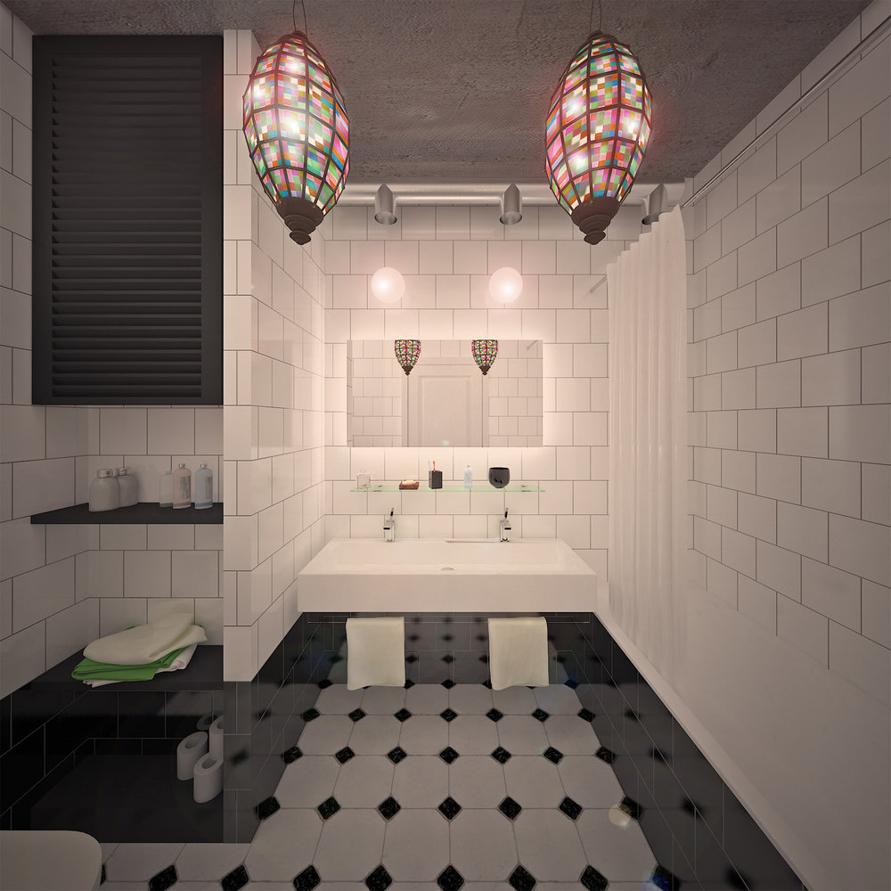 Фотография: Ванная в стиле Современный, Лофт, Эклектика, Квартира, Россия, Планировки, Мебель и свет, Белый, Проект недели, Черный, Зеленый, Желтый, Синий, Серый, Коричневый, Подмосковье, Красногорск, спальня-гостиная, Александр Колганов, Евгения Щепенок, model_bananova, как отгородить детскую в студии – фото на INMYROOM