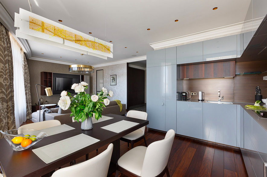 Фотография: Кухня и столовая в стиле Современный, Квартира, Россия, Москва, Санкт-Петербург, Гид, Марина Саркисян, Инна Теджоева, Красногорск, Верхнее Мячково, Зина Броян, Анастасия Бархатова, Екатерина Кокоулина, Михаил Новинский, Мила Колпакова, Ирина Лаврентьева, как объединить кухню и гостиную, совмещение кухни и гостиной – фото на INMYROOM