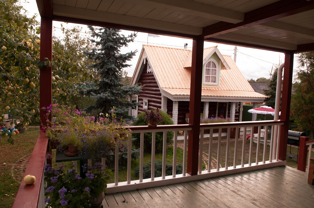 Фотография: Терраса в стиле Прованс и Кантри, Россия, Ландшафт, Декор, Мебель и свет, Белый, Дача, Красный, Зеленый, Бежевый, Коричневый, Эко, Подмосковье, Дом и дача, Фазенда, Трехгорная мануфактура, АртГородец, Можайский лесопильный деревообрабатывающий комбинат, Александр Жданов, Светлана Васильева, деревянный фасад в русском стиле, баня пряничный домик, деревянная кровля, резьба по дереву, городецкая резьба, городецкая роспись, астраханский стиль – фото на INMYROOM