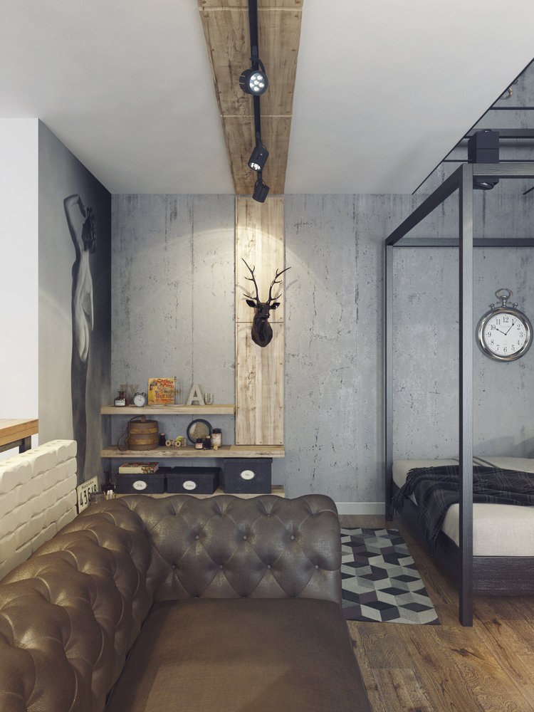 Фотография: Спальня в стиле Лофт, Квартира, Планировки, Аксессуары, Bober & Decor, Loft Art, Vita, Мебель и свет, Проект недели, ИКЕА, Подмосковье, Филипп Шутов, Екатерина Шутова, KAMROCK, Cosmorelax, LG, Markslojd, Мытищи, Ля Нэж, Дива, Полимерметалл, Progress Plast, Termosmart, IFO, Melana, Rondine Group RHS, Halcon, Samsung, Moonzana, Apavisa, Prof Decor, Art Shutters, Letta, Perspective, студия для холостяка, лофт в Мытищах, амбарные двери, квартира изогнутой формы – фото на INMYROOM