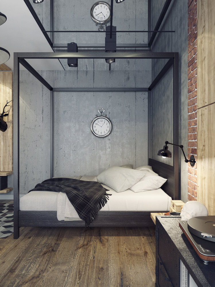 Фотография: Спальня в стиле Лофт, Квартира, Планировки, Аксессуары, Bober & Decor, Loft Art, Vita, Мебель и свет, Проект недели, ИКЕА, Подмосковье, Филипп Шутов, Екатерина Шутова, KAMROCK, Cosmorelax, LG, Markslojd, Мытищи, Ля Нэж, Дива, Полимерметалл, Progress Plast, Termosmart, IFO, Melana, Rondine Group RHS, Halcon, Samsung, Moonzana, Apavisa, Prof Decor, Art Shutters, Letta, Perspective, студия для холостяка, лофт в Мытищах, амбарные двери, квартира изогнутой формы – фото на INMYROOM