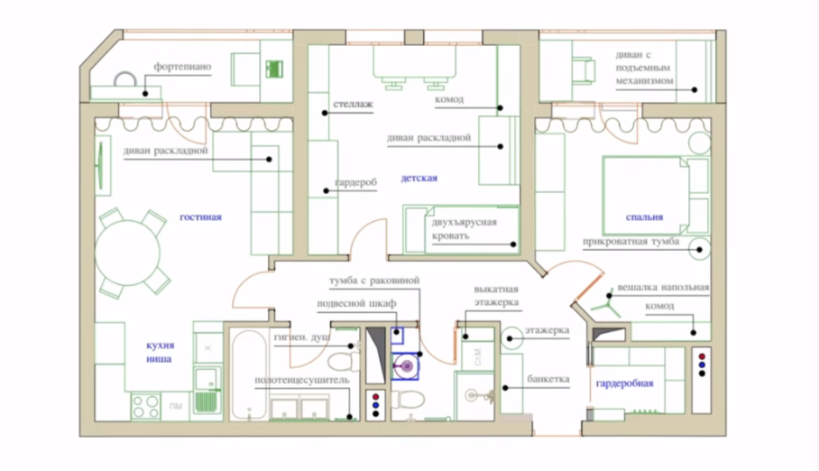 Продуманная трешка 75 м² начинающего дизайнераДизайн
