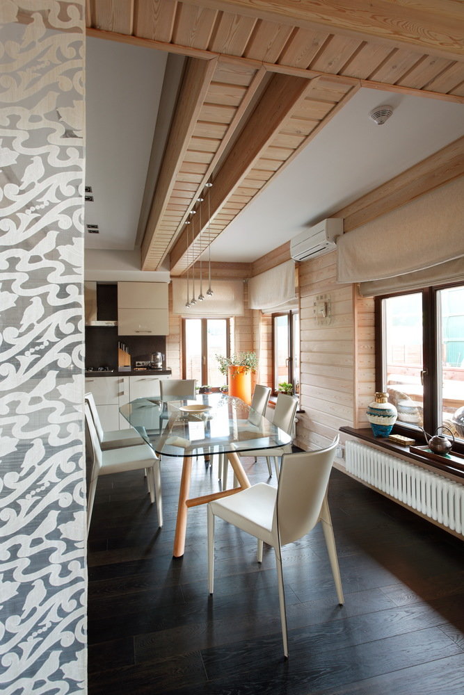Фотография: Кухня и столовая в стиле Эко, Современный, Дом, Планировки, Artemide, Flos, Galassia, Harlequin, Kravet, Декор, Мебель и свет, Белый, Проект недели, Зеленый, Бежевый, Серый, Оранжевый, Коричневый, Подмосковье, Дом и дача, STUDIO ITALIA DESIGN, Hansgrohe, Духанино, Duralee, Galotty&radice, Cattelan Italia, Miniforms, Kolo, Desiree, Pierantoniobonacina, Leicht, Buschfeld, Fine Art Lamps, Beacon Hill, Таисия Капридова, Дмитрий Марьясов, АБ «Сретенка», современная отделка в типовом доме из бруса, dom-iz-brusa – фото на INMYROOM