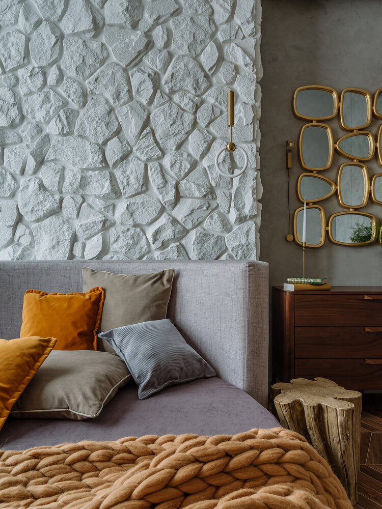 Стильная евродвушка 63 м² с красивой росписью в спальнеДизайн
