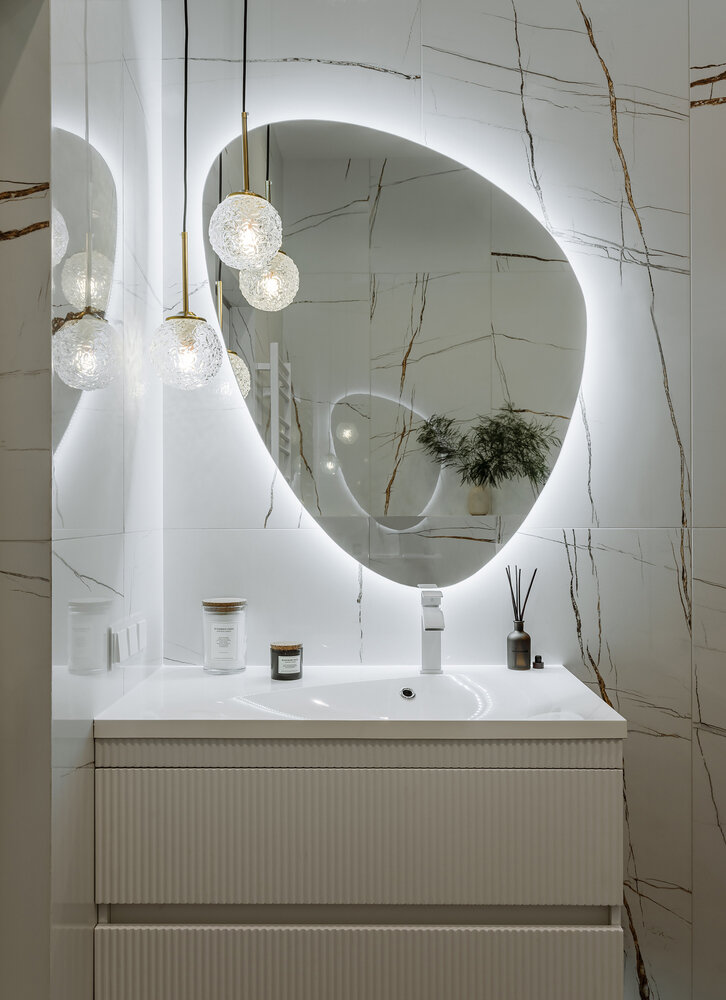 Стильная евродвушка 63 м² с красивой росписью в спальнеДизайн