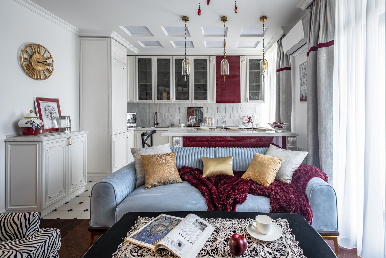Трешка 89 м² с тремя гардеробными и балконом для кошкиДизайн