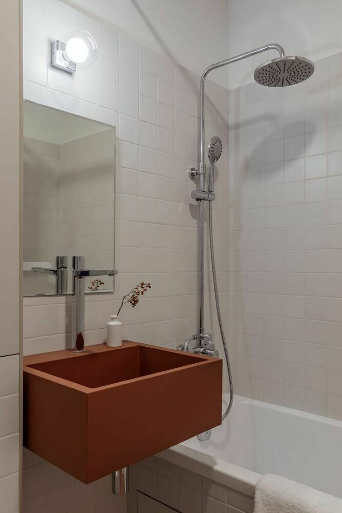 Фотография: Ванная в стиле Скандинавский, Современный, Минимализм, Малогабаритная квартира, Квартира, Проект недели, Панельный дом, 1 комната, 40-60 метров, малогабаритки – фото на INMYROOM
